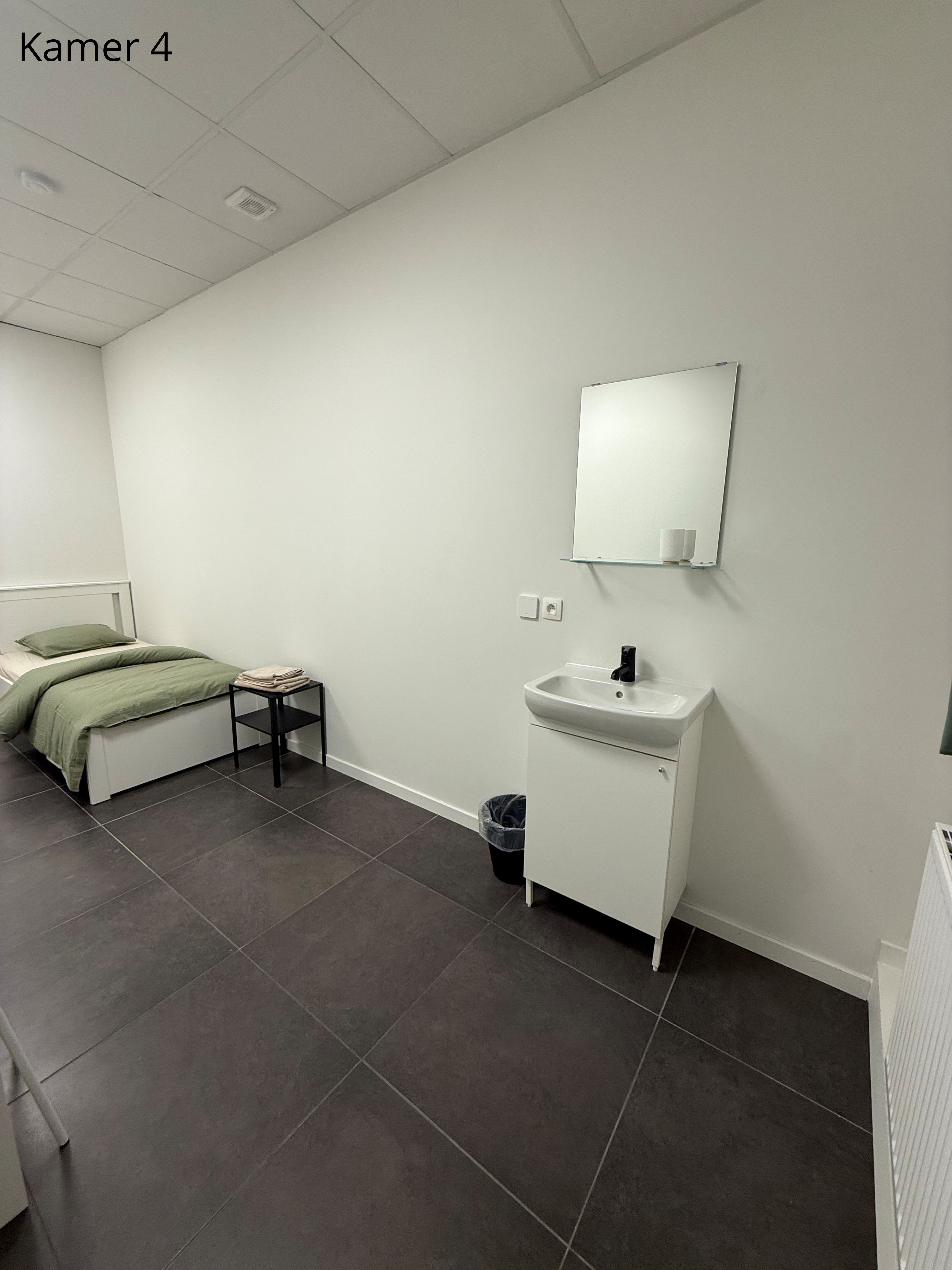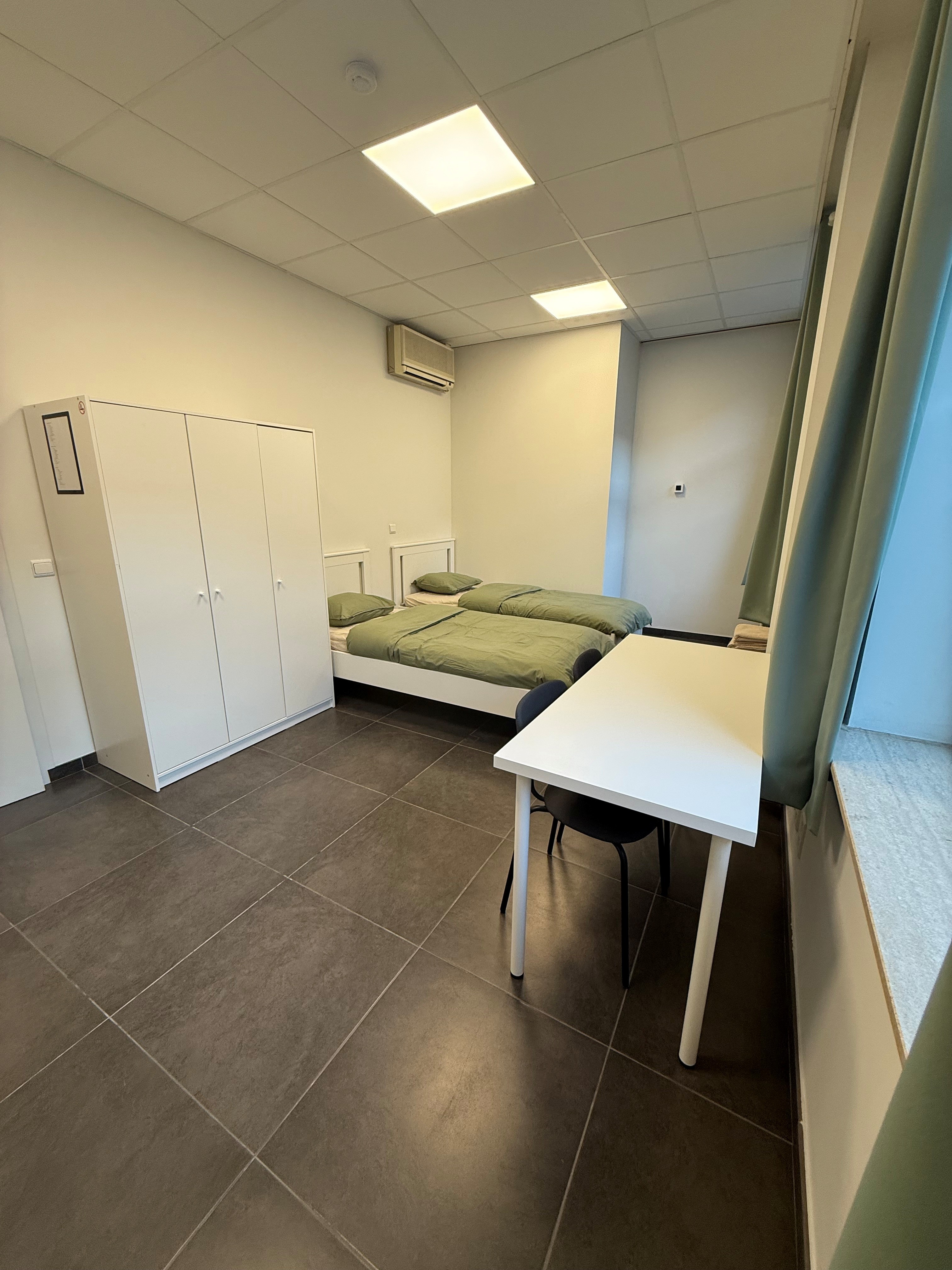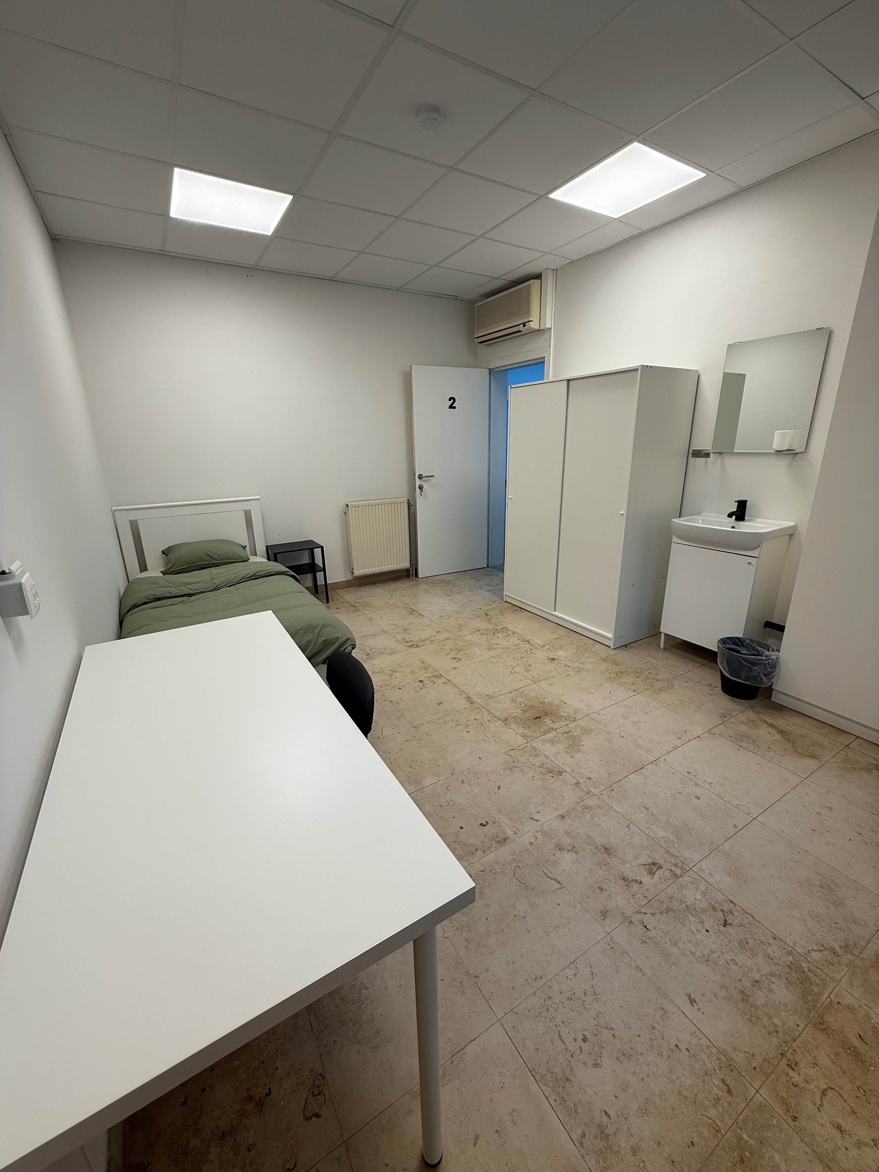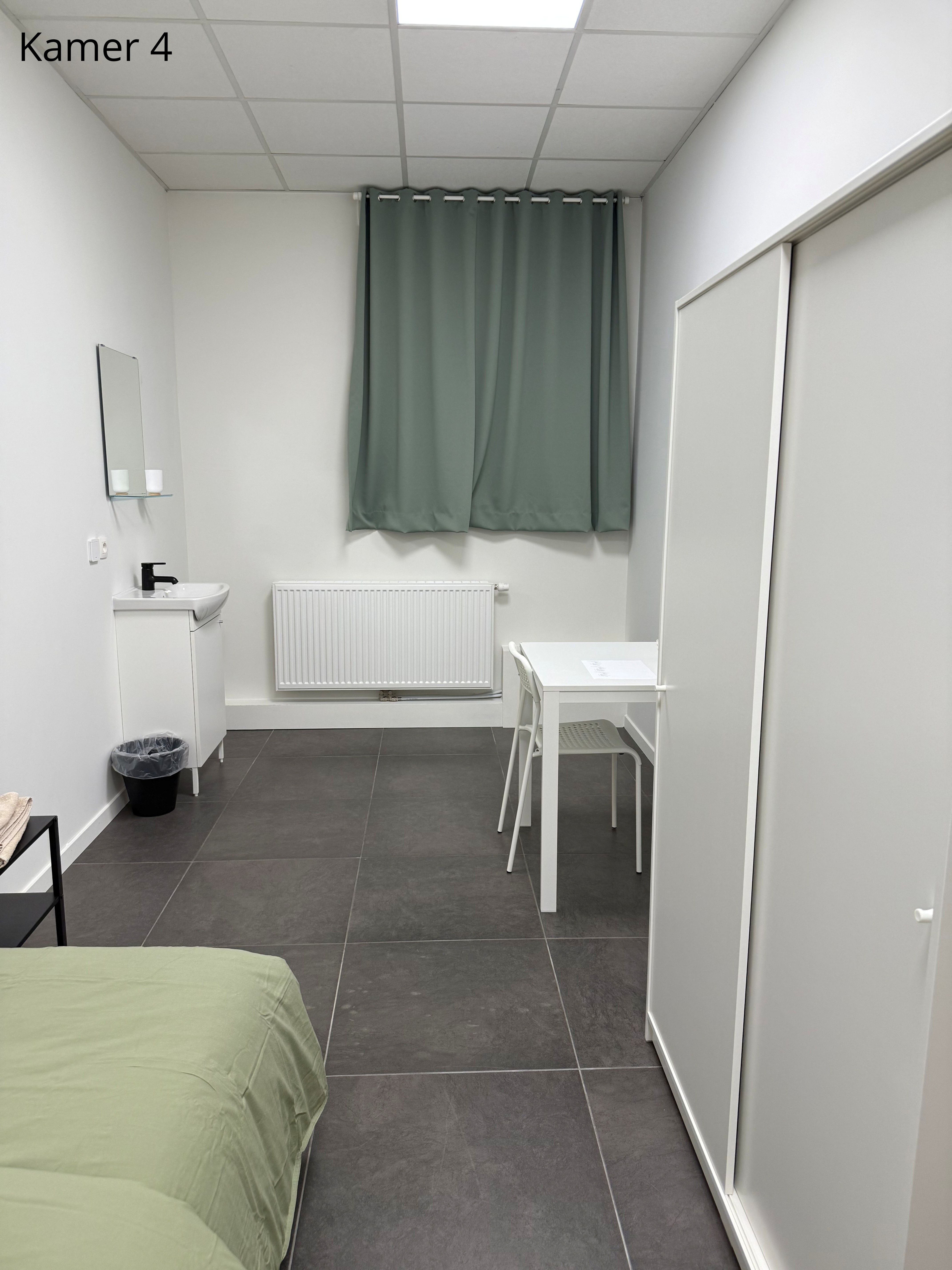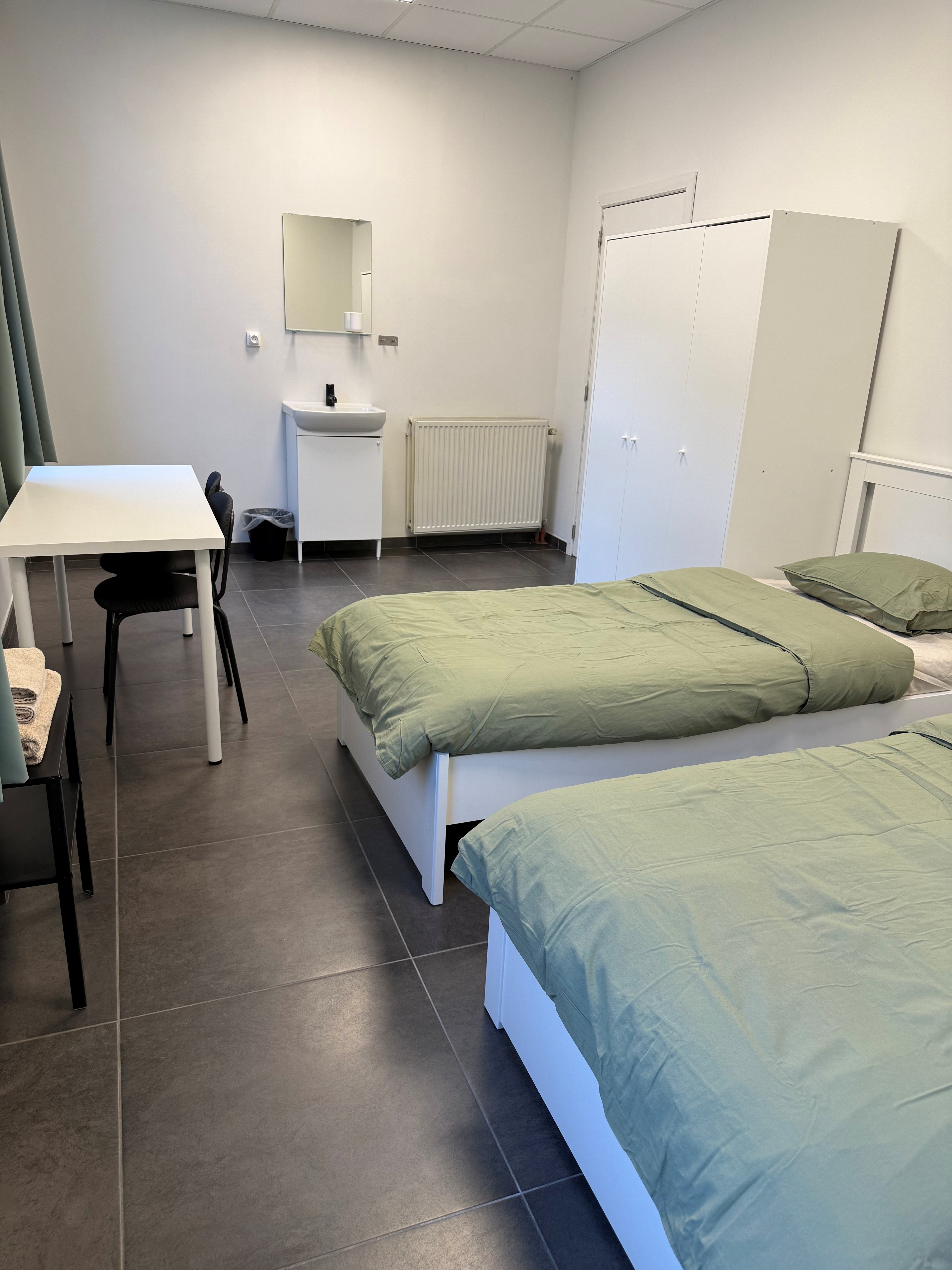Er zijn 5 gemeubelde kamers te huur. Elke kamer is voorzien van een comfortabel bed met matras, een kast, een tafel en verduisterende gordijnen. Het bedlinnen wordt wekelijks ververst.