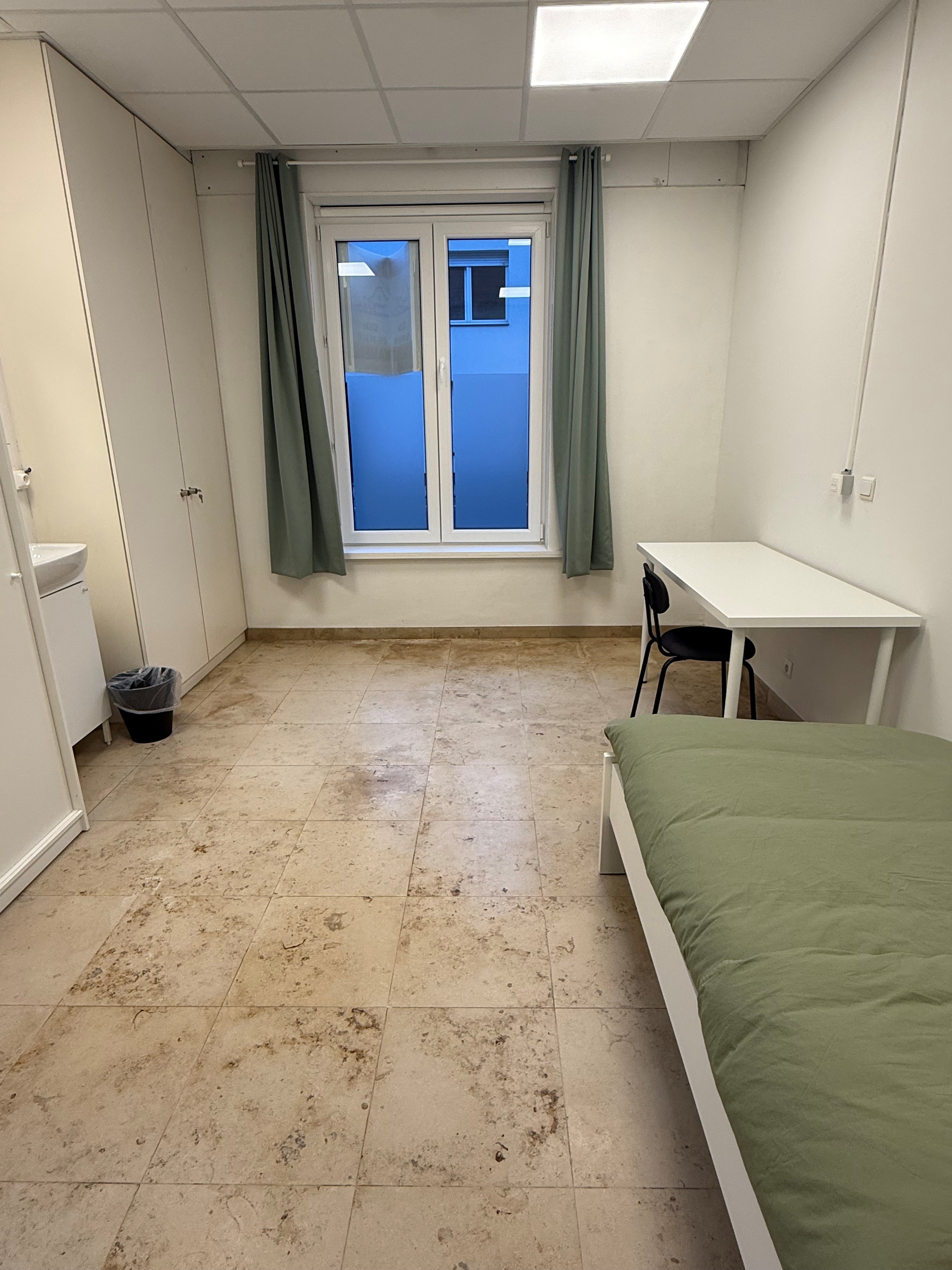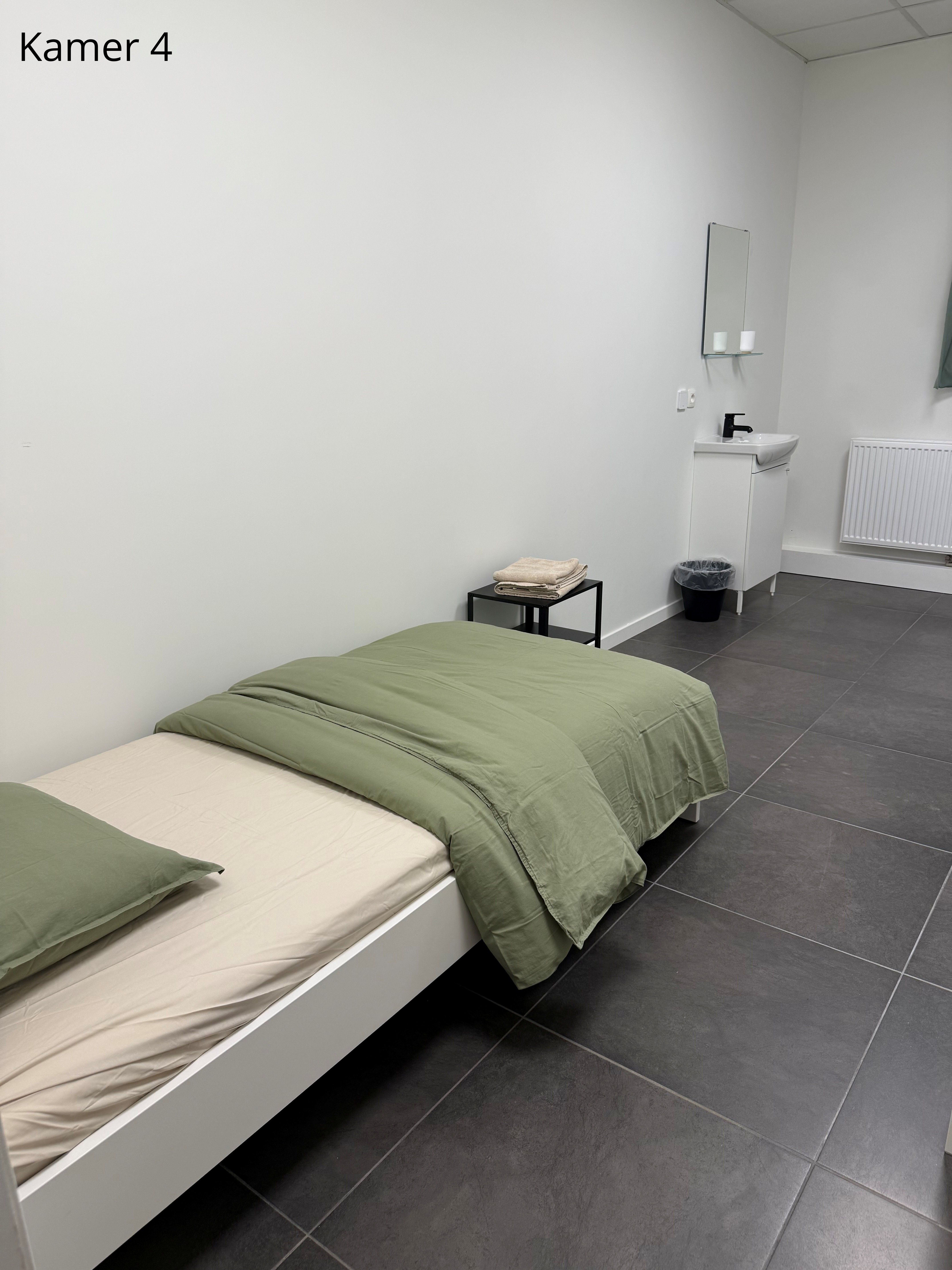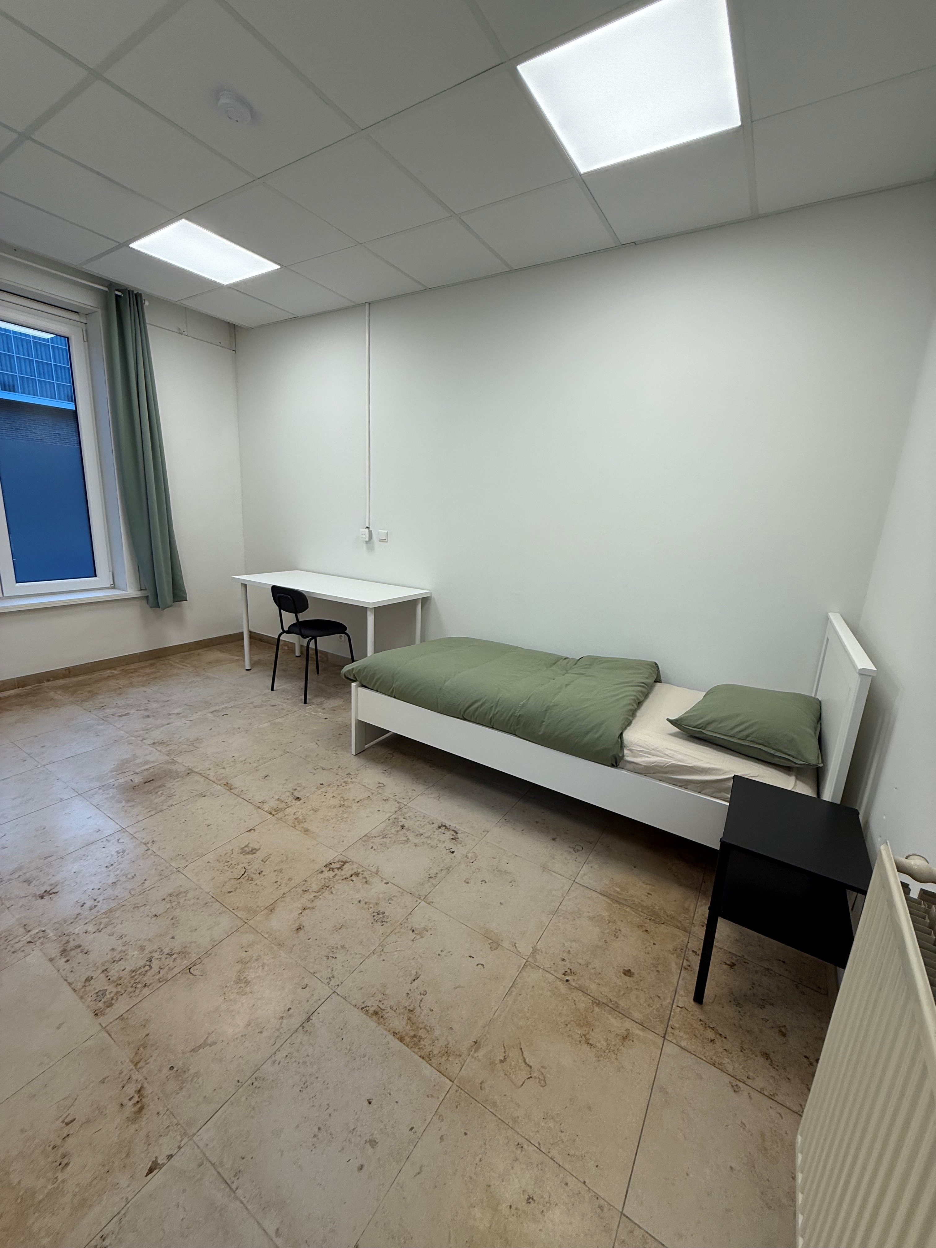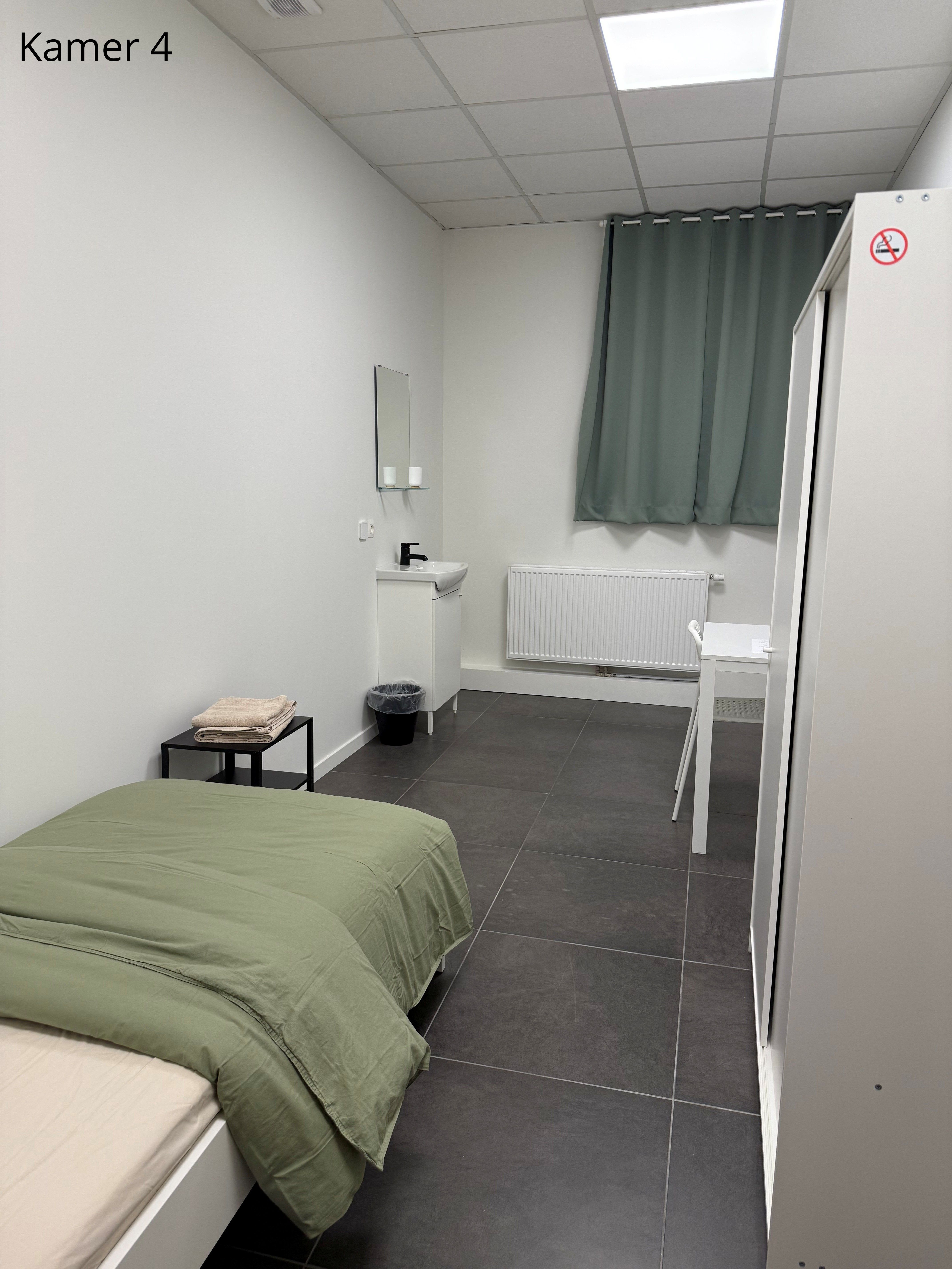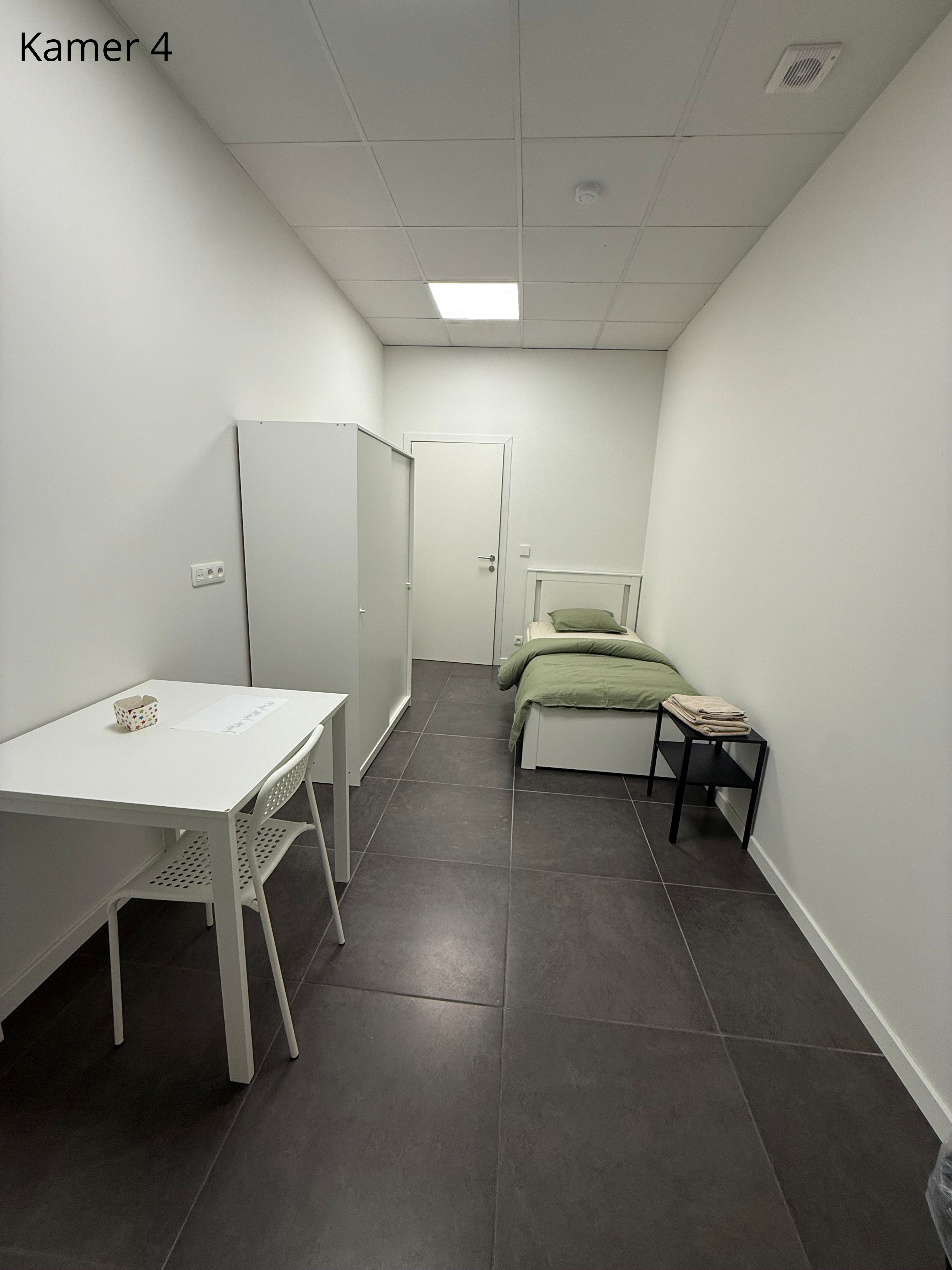 Er zijn 5 gemeubelde kamers te huur. Elke kamer is voorzien van een comfortabel bed met matras, een kast, een tafel en verduisterende gordijnen. Het bedlinnen wordt wekelijks ververst.
